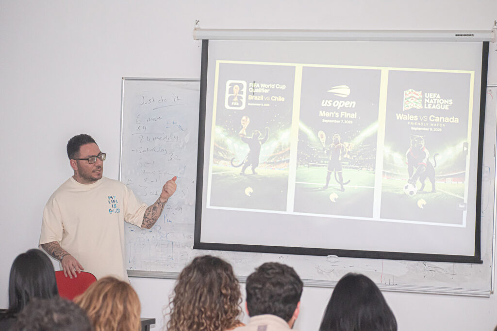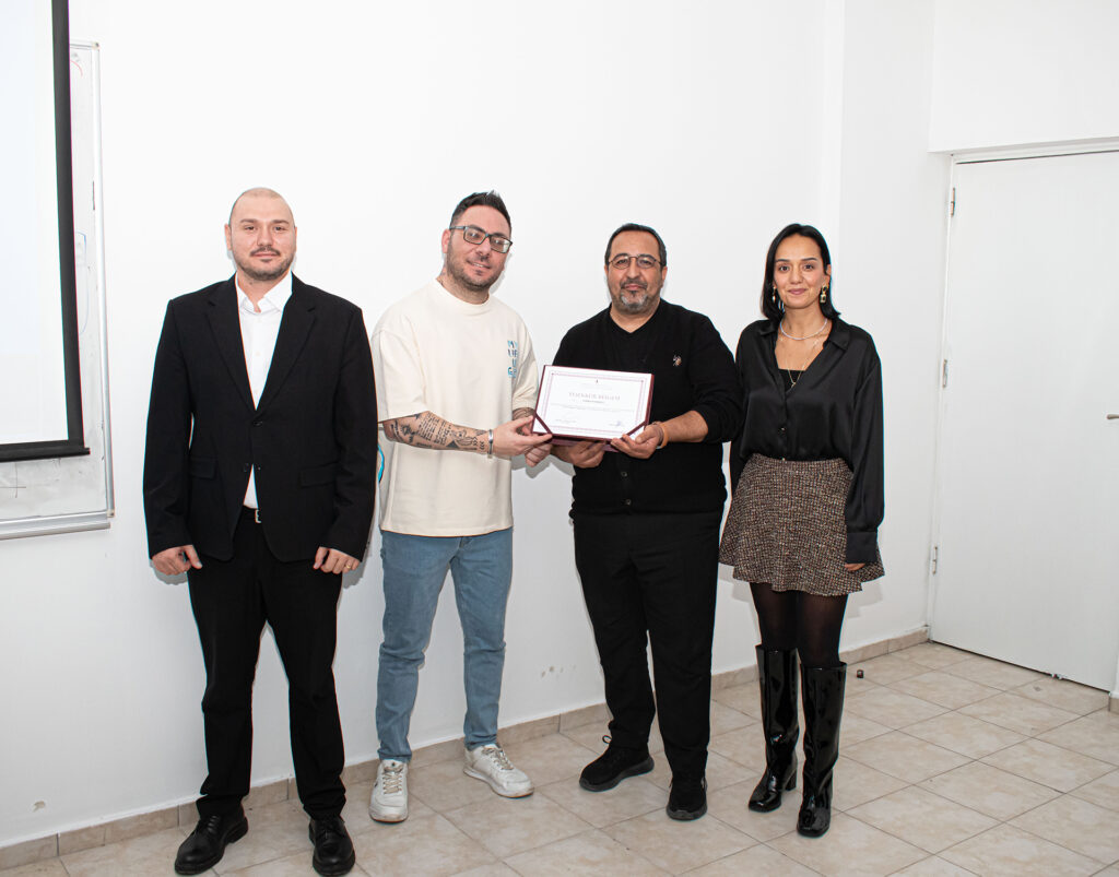 Görkem Dereli, görsel tasarım süreci kapsamında mesleki bilgi ve deneyimlerini paylaşıp, kurumlara yapmış olduğu çeşitli tasarım projelerini sunup, yapay zeka destekli tasarım çalışmalarını öğrencilere paylaştı.